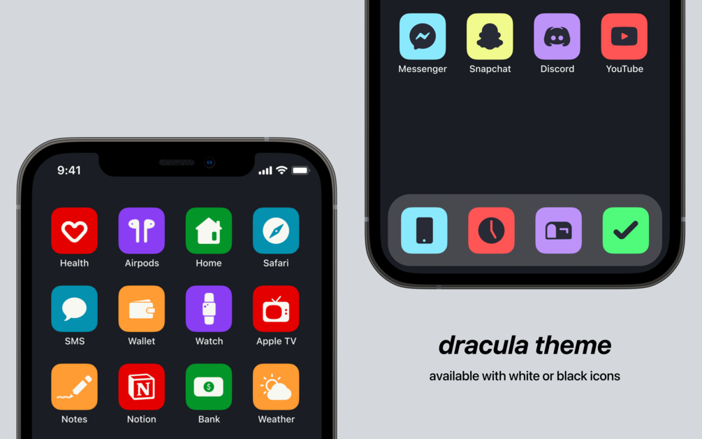 A set of 100+ custom app icons, compatible with iOS 14 and Android. Features a minimal design and four unique colorways, inspired by popular code editor color schemes.